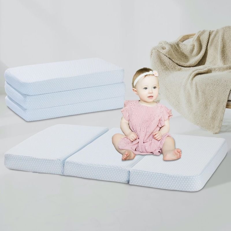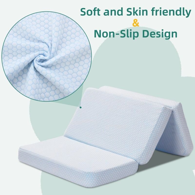 完美尺寸- 鑫希陽這款可折疊背帶床墊的尺寸為38x26 英寸,適用于國外大多數嬰兒床、學步床和背帶床。高貴的藍白色,不易臟,非常適合初為父母的寶寶。給您的寶寶一份更好睡眠的禮物!