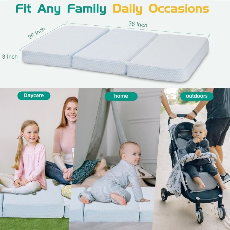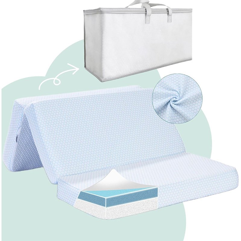 攜帶方便-我們的便攜式嬰兒床床墊配有一個方便的手提袋,便于外出攜帶!非常適合家庭度假、公路旅行或在爺爺奶奶家過夜。如果您對38x26 可折疊床墊有任何疑問,請隨時告訴我們,我們將盡全力為您提供幫助。