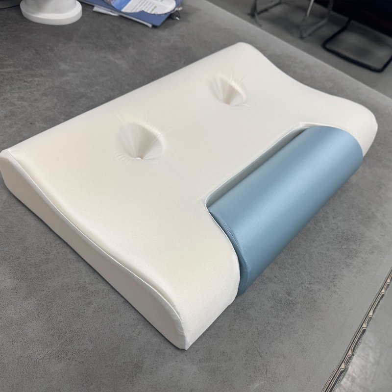 頭部釋壓區: 周邊大面積區域采用零壓力記憶棉,它柔軟貼合頭型,能分散頭部壓力,確保頭部舒適的同時,與牽引區協同作用,共同維護脊柱的自然直線。